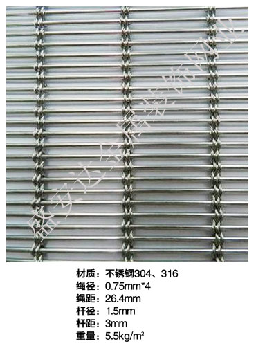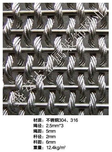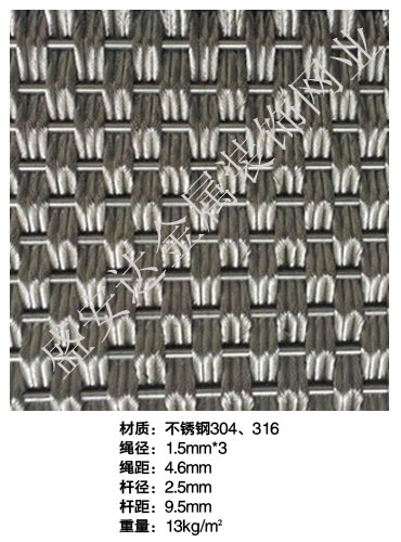 合股裝飾網本產品,采用優質不銹鋼、黃銅、磷銅編織而成,從拉絲、捻股、合繩、拋光、漂洗、織網、銷售及售后服務等方面入手,逐漸形成生產與銷售一條龍服務。產品具有經久耐用,華麗高檔,科技含量高等特點,被廣泛應用于高級建筑的窗簾、吊頂、樓梯、電梯、豪華辦公大樓、賓館、豪華舞廳、營業大廳等建筑物的室內外裝飾,在燈光照射下金碧輝煌,典雅精致。