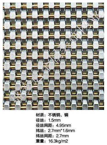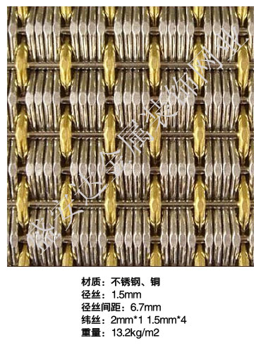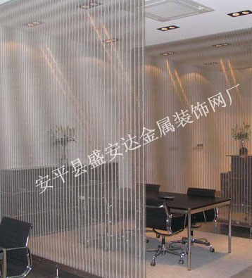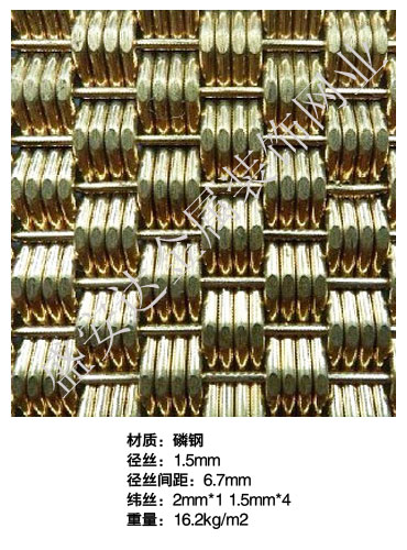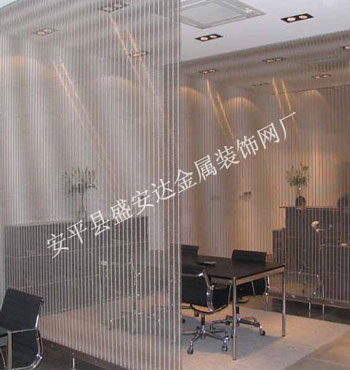 本產品,采用優質不銹鋼、黃銅、磷銅編織而成,從拉絲、捻股、合繩、拋光、漂洗、織網、銷售及售后服務等方面入手,逐漸形成生產與銷售一條龍服務。產品具有經久耐用,華麗高檔,科技含量高等特點,被廣泛應用于高級建筑的窗簾、吊頂、樓梯、電梯、豪華辦公大樓、賓館、豪華舞廳、營業大廳等建筑物的室內外裝飾,在燈光照射下金碧輝煌,典雅精致。
